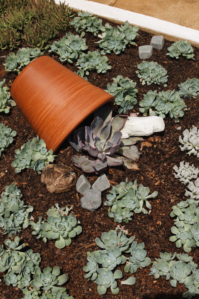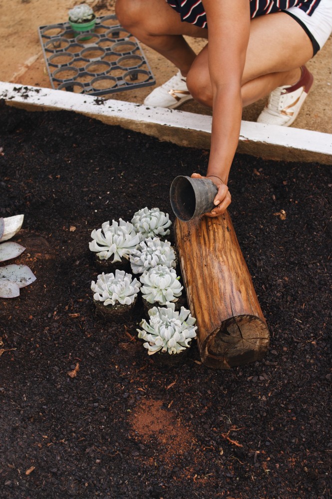 Um canteiro recém-montado precisa ser regado! Sempre que replantar uma echeveria, você precisa molhar bem. Depois disso, observe o comportamento do substrato.