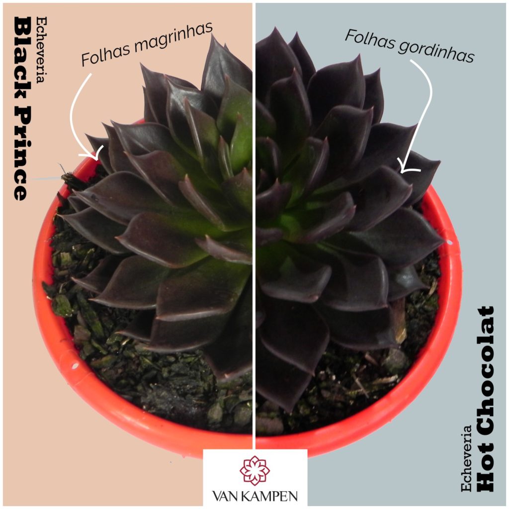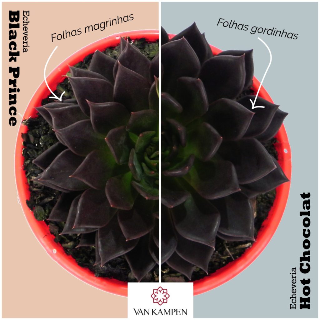 - COR: a Hot Chocolat tem uma tonalidade um pouco mais escura quando mantida nas mesmas condições de rega e luz, enquanto a Black Prince dificilmente perde o seu centro verde.
