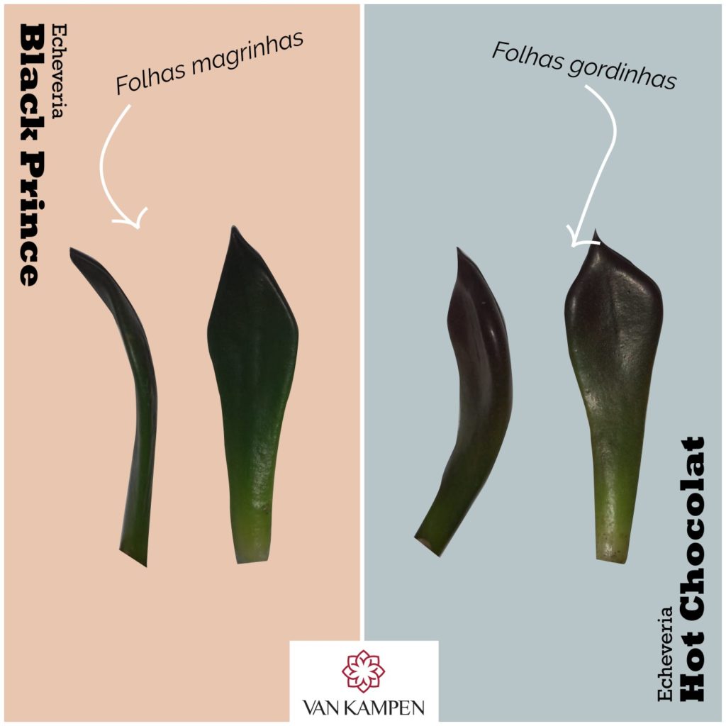 - FOLHAS: A forma mais fácil de diferenciar as duas variedades é pelo formato das folhas. As folhas da Black Prince são mais estreitas e mais finas, enquanto as folhas da Hot Chocolat são mais largas e gordinhas.