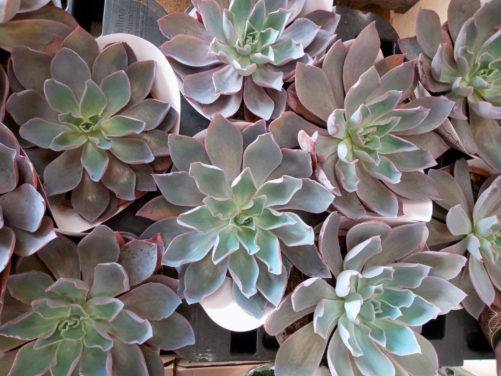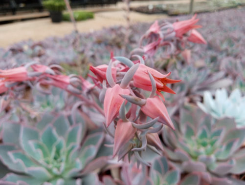 Até há pouco estávamos produzindo a echeveria afterglow com uma fila de espera, pois é uma planta da qual produzimos pouco. É uma variedade mais difícil de desenvolver do que outras, devido a uma série de particularidades e segredinhos.